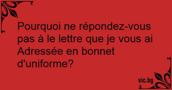 Pourquoi ne répondez-vous pas à le lettre que je vous ai