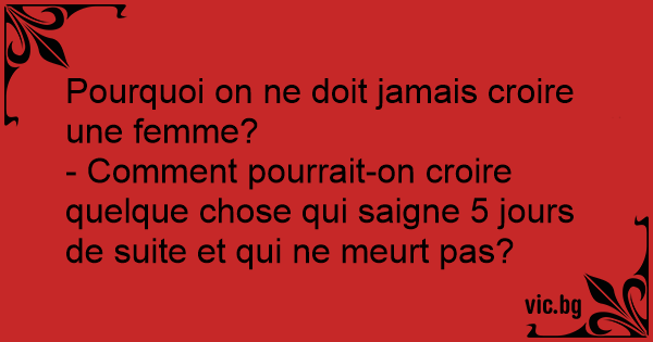 De ce nu poate avea un barbat incredere intr-o femeie? Raspuns: cum poti avea incredere in cineva care sangereaza 7 zile in fiecare luna si nu moare??