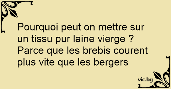 Pourquoi peut on mettre sur un tissu pur laine vierge ?Parce que les brebis courent plus vite que les bergers
