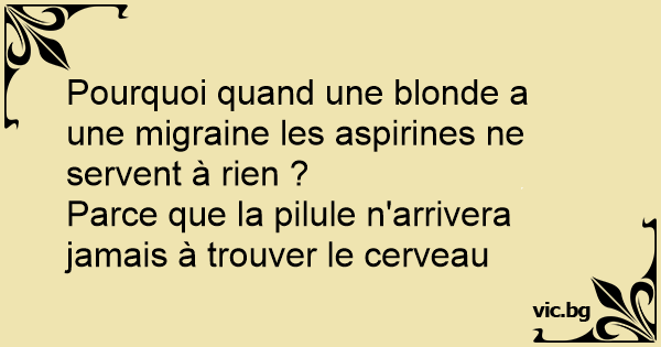 Pourquoi quand une blonde a une migraine les aspirines ne servent à rien ?