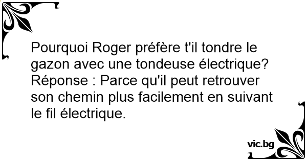 Pourquoi Roger préfère t'il tondre le gazon avec une tondeuse électrique?