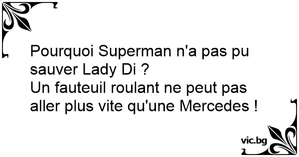Pourquoi Superman n'a pas pu sauver Lady Di ?<br />Un fauteuil roulant ne peut pas aller plus vite qu'une Mercedes !