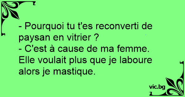 - Pourquoi tu t'es reconverti de paysan en vitrier ?