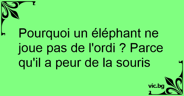 Pourquoi un éléphant ne joue pas de l'ordi ? Parce qu'il a peur de la souris