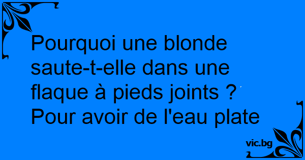 Pourquoi une blonde saute-t-elle dans une flaque à pieds joints ?
