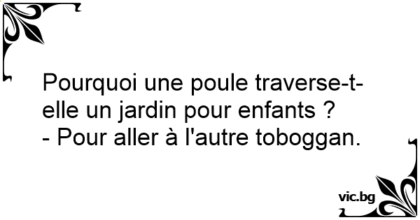 Pourquoi une poule traverse-t-elle un jardin pour enfants ?