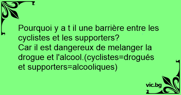 Car il est dangereux de melanger la drogue et l'alcool.(cyclistes=drogués et supporters=alcooliques)