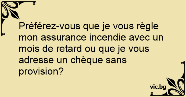 Préférez-vous que je vous règle mon assurance incendie avec un mois de rетаrd ou que je vous adresse un chèque sans provision?