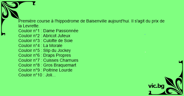 Première course à l'hippodrome de Baisenville aujourd'hui. Il s'agit du prix de la Levrette.