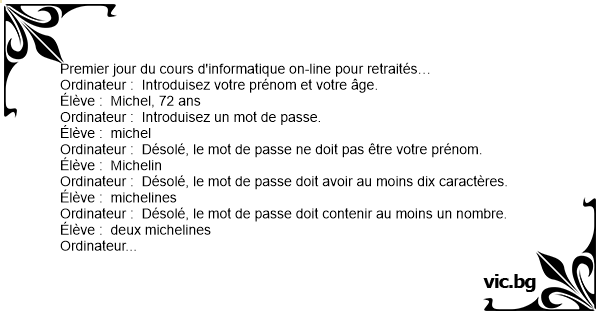 Ordinateur : Désolé, le mot de passe ne doit pas être votre prénom.