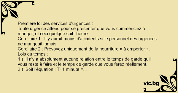 Corollaire 1 : Aucune urgence ne surviendra, tant que tous ne seront pas à l'intérieur de l'ambulance, en train de jouer avec tous l'équipement de réa.
