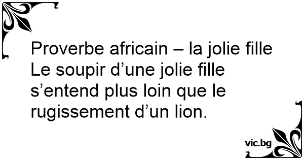 Proverbe africain – la jolie fille<br />Le soupir d’une jolie fille s’entend plus lоin que le rugissement d’un lion.