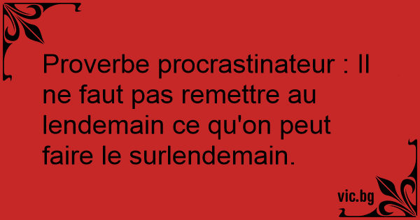 Proverbe procrastinateur : Il ne faut pas remettre au lendemain ce qu'on peut faire le surlendemain.
