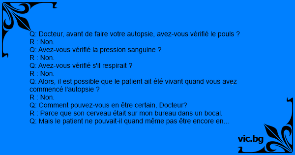Q: Docteur, avant de faire votre autopsie, avez-vous vérifié le pouls ?