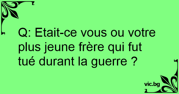 Q: Etait-ce vous ou votre plus jeune frère qui fut tué durant la guerre ?