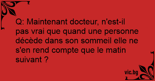 Q: Maintenant docteur, n'est-il pas vrai que quand une personne décède dans son sommeil elle ne s'en rend compte que le matin suivant ?