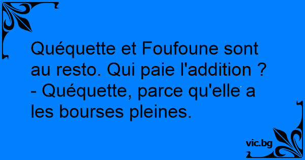 Quéquette et Foufoune sont au resto. Qui paie l'addition ?