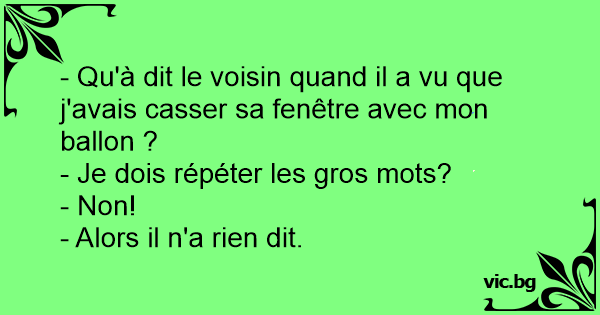- Qu'à dit le voisin quand il a vu que j'avais casser sa fenêtre avec mon ballon ?