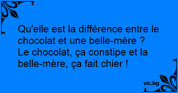 Le chocolat, ça constipe et la belle-mère, ça fait chier !