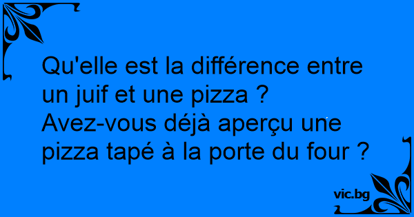 Quel est la différence entre une pizza et des juifs ? Les pizzas ne toquent pas à la porte du four
