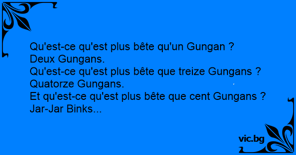 Qu'est-ce qu'est plus bête que treize Gungans ?