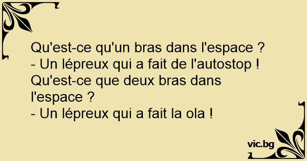 - Un lépreux qui a fait de l'autostop !Qu'est-ce que deux bras dans l'espace ?