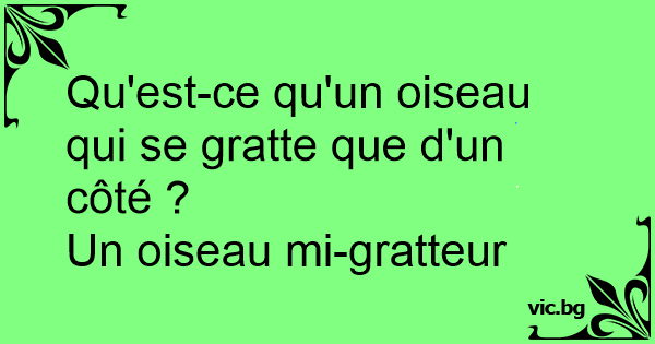 Qu'est-ce qu'un oiseau qui se gratte que d'un côté ?