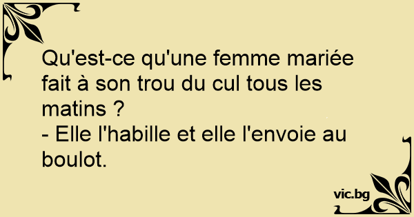 Qu'est-ce qu'une femme mariée fait à son trou du cul tous les matins ?