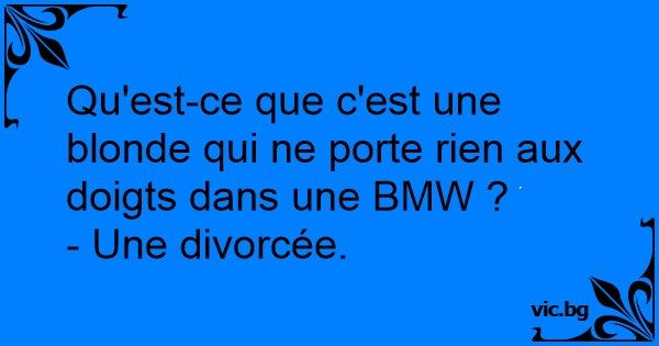 Qu'est-ce que c'est une blonde qui ne porte rien aux doigts dans une BMW ?