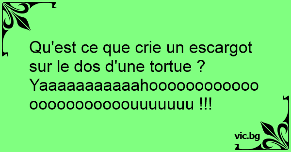 Qu'est ce que crie un escargot sur le dos d'une tortue ?