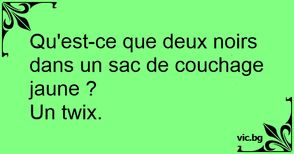 Qu'est-ce que deux noirs dans un sac de couchage jaune ?