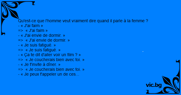 Qu'est-ce que l'homme veut vraiment dire quand il parle à la femme ?