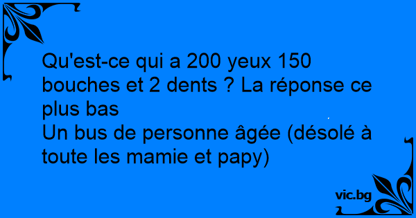 Qu'est-ce qui a 200 yeux 150 bouches et 2 dents ? La réponse ce plus bas