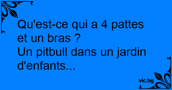 - Šta ima četiri noge i ruku? - Veseli pitbul.