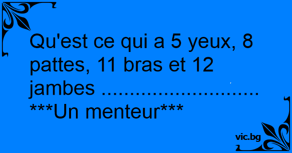 Qu'est ce qui a 5 yeux, 8 pattes, 11 bras et 12 jambes ............................