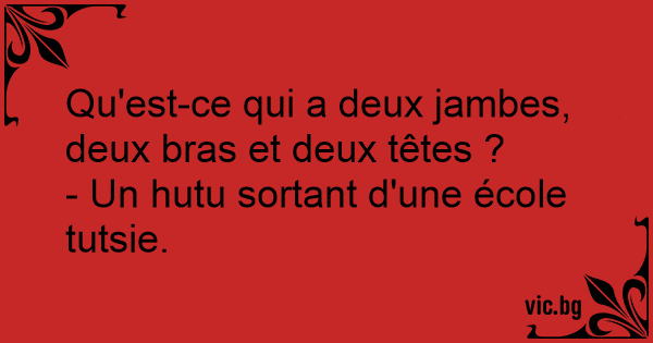 Qu'est-ce qui a deux jambes, deux bras et deux têtes ?