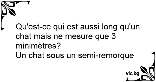 Qu'est-ce qui est aussi long qu'un chat mais ne mesure que 3 minimètres?