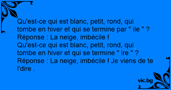 Réponse : La neige, imbécile ! Je viens de te l'dire .