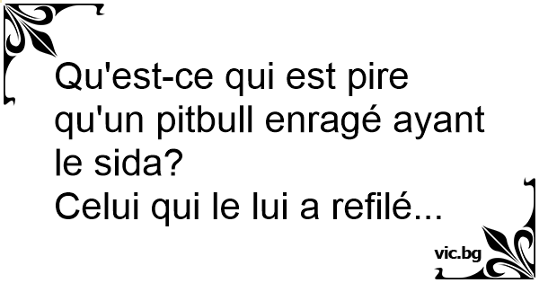 Qu'est-ce qui est pire qu'un pitbull enragé ayant le sida?