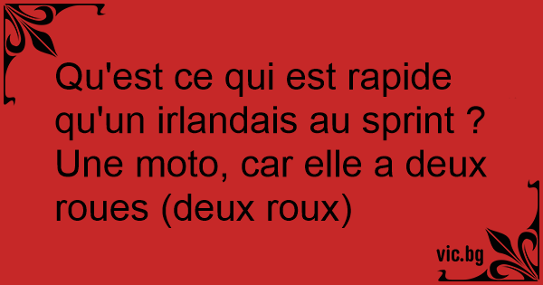 Une moto, car elle a deux roues (deux roux)