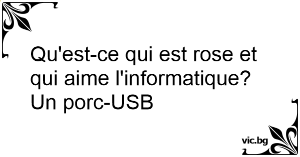 Qu'est-ce qui est rose et qui aime l'informatique?<br />Un porc-USB