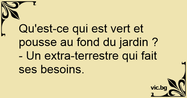 Qu'est-ce qui est vert et pousse au fond du jardin ?