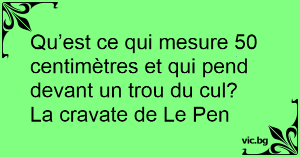 Qu’est ce qui mesure 50 centimètres et qui pend devant un trou du cul?