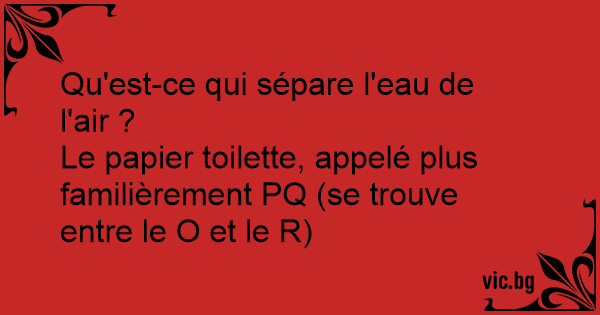 Le papier toilette, appelé plus familièrement PQ (se trouve entre le O et le R)
