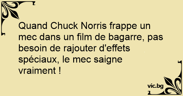 Quand Chuck Norris frappe un mec dans un film de bagarre, pas besoin de rajouter d'effets spéciaux, le mec saigne vraiment !