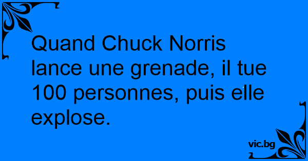 Quand Chuck Norris lance une grenade, il tue 100 personnes, puis elle explose.