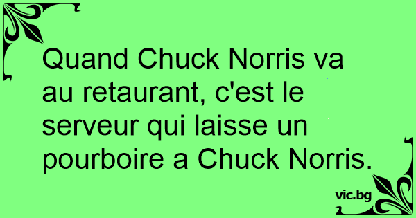 Quand Chuck Norris va au retaurant, c'est le serveur qui laisse un pourboire a Chuck Norris.