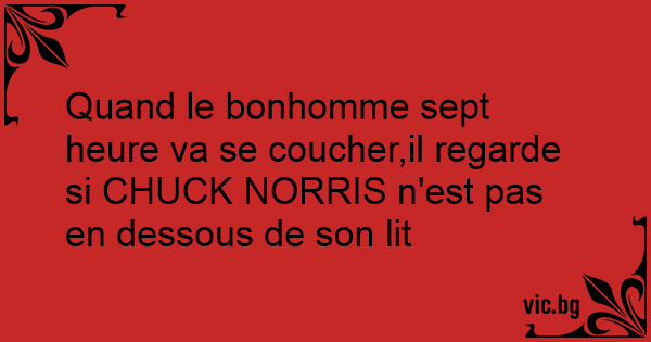 Quand le bonhomme sept heure va se coucher,il regarde si CHUCK NORRIS n'est pas en dessous de son lit