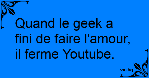 Quand le geek a fini de faire l'amour, il ferme Youtube.