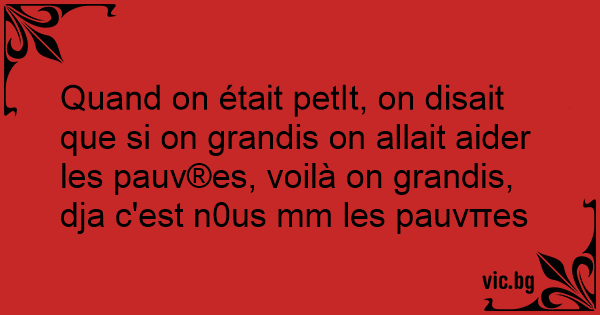 Quand on était petIt, on disait que si on grandis on allait aider les pauv®es, voilà on grandis, dja c'est n0us mm les pauvπes
